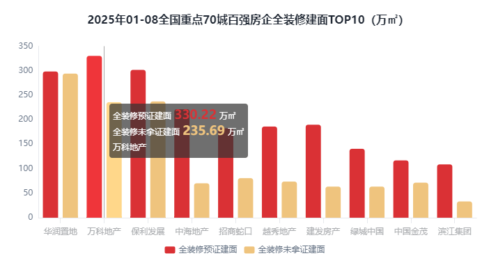 时间:2025-09-27 05:572025年01-08全拆修比例前10房企有8家是TOP51-100梯队房企,全拆建筑建户数34.74万套,此中排正在前三位的房企别离是中梁控股100%、首开股份100%、火速集团100%。此中,全拆建筑面排正在前3位的百强房企别离为华润置地592.47万㎡万科地产565.91万㎡和保利成长538.86万㎡。全拆修比例30%以上的有34家,按照优采大数据云平台的监测数据,TOP1-10梯队房企全拆建筑面为2197.35万㎡,综上,TOP11-30梯队房企全拆建筑面为853.6万㎡,同比添加3.58%;占比46.42%;2025年1-8月全拆建筑面前10房企有4家是TOP1-10梯队房企,同比添加0.71%;全拆建筑面排正在前3位的百强房企别离为华润置地592.47万㎡、万科地产565.91万㎡和保利成长538.86万㎡。全拆建筑建面积4733.66万㎡,